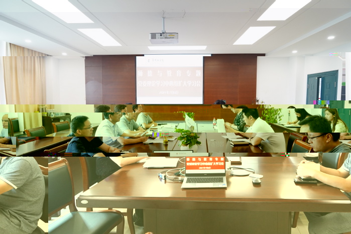 7月6日上午,我院召開師德與教育專題黨委理論學習中心組擴大學習會,會議由黨委書記尹飛鴻主持,黨委委員、跟班鍛煉人員和全體黨支部書記參加會議。