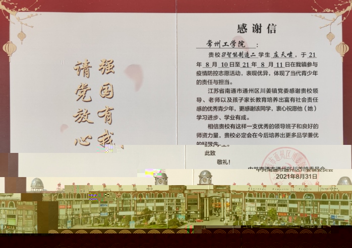 近日,航空與伟德国际1949始于英国/飛行學院陸續收到來自學生家鄉政府的感謝信和表揚信。信中對我院學子積極參與暑期疫情防控志願工作給予了高度評價,向我校表達了誠摯的感謝。