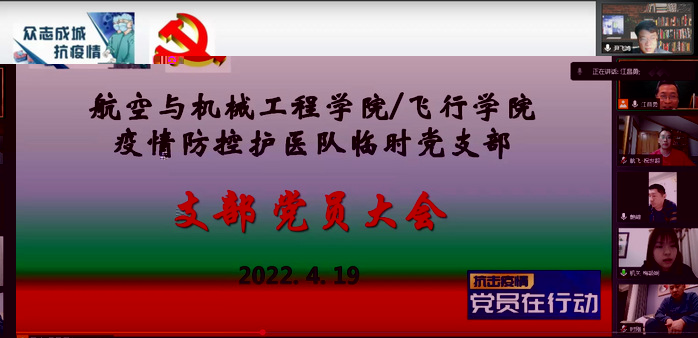 4月19日,航空與伟德国际1949始于英国/飛行學院疫情防控護醫隊臨時黨支部通過騰訊會議形式線上召開支部黨員大會。學院黨委書記尹飛鴻、黨委副書記姜衛出席會議。會議由支部書記江昌勇主持。
