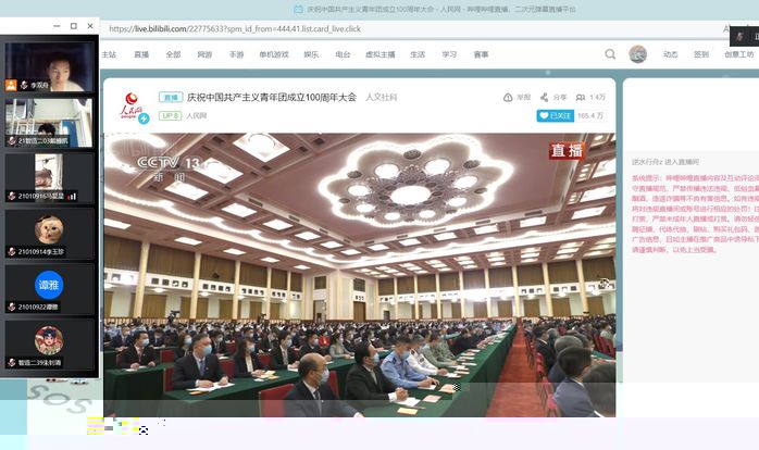 直播大會中大家認真傾聽中共中央總書記、國家主席、中央軍委主席習近平發表重要講話,回顧建團百年的光輝曆程,展望中華民族偉大複興的光明前景,倍感振奮、豪情滿懷、鬥志昂揚。大會直播結束後,同學們也紛紛表達了自己的所感所想。