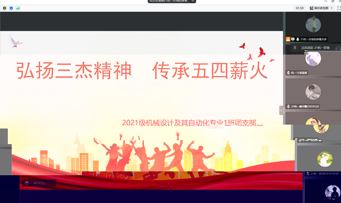 在慶祝中國共産主義青年團成立100周年之際,為學習五四精神,傳承紅色基因,5月11日, 21機一團支部以線上線下結合的方式開展以“弘揚三傑精神 傳承五四薪火”為主題的共青團主題活動。