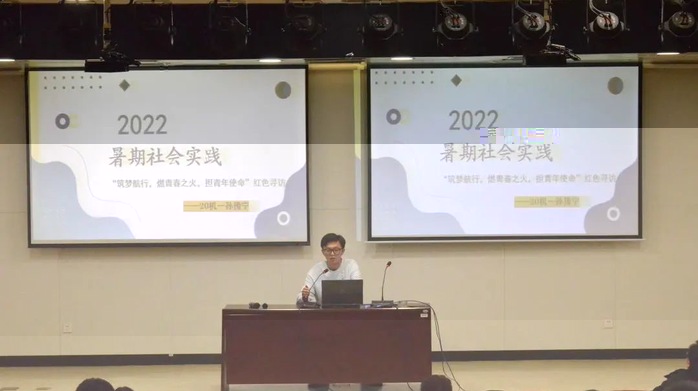 9月28日下午,航空與伟德国际1949始于英国/飛行學院于圖書館一樓報告廳舉辦2022年暑期實踐歸來話活動,學院遴選5支優秀暑期社會實踐團隊來展示實踐成果。本次活動主要面向22級新生與部分21級的同學。學工辦主任王愛祥、學院學生會主席孫豫甯、學生團委副書記宋端鴻出席本次活動。