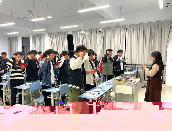 當莊重的國歌響起時,同學們全體起立,飽含深情的歌唱着國歌。随後淩宇航同學用吉他彈奏《我的祖國》歌曲中透露着對祖國濃濃愛。接着團支書紀可佳通過ppt為同學們介紹了憲法賦予我們的權利與義務,再通過視頻介紹憲法的誕生以及發展曆程,為同學們普及了憲法基本知識。同時團支書還号召大家主動積極的學習、運用、維護和宣傳憲法。然後徐龍同學發表了“學憲法,講憲法”的演講,演講中例舉了身邊的事情,講述了憲法是如何存在于我們身邊,是如何改變我們的生活的,這使同學們意識到憲法雖然是治國安邦的根本大法,但是憲法距離我們并不遙遠,而是與我們的生活息息相關。
