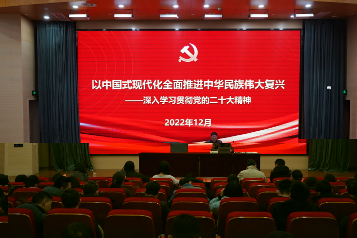 12月7日,我院在行政樓輔樓二樓報告廳組織全體教職工學習貫徹黨的二十大精神宣講報告,報告的主題為“以中國式現代化全面推進中華民族偉大複興——深入學習貫徹黨的二十大精神”。會議由學院黨委書記尹飛鴻主持,全體教職工參加會議。