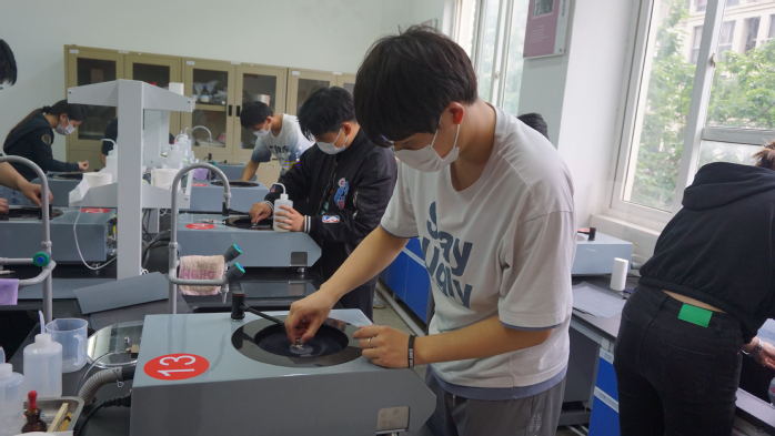 比賽過程中,選手在規定時間内,對指定金屬樣品的指定端面完成抛磨、浸蝕等工序,制備出清潔、平整、在金相顯微鏡下可以清晰觀察到顯微組織的樣品,從圖像質量、樣品清潔程度、樣品平整度等方面對選手的金相實驗技能進行評比考察,評委老師們進行了現場點評,并提出了相應的意見和建議。