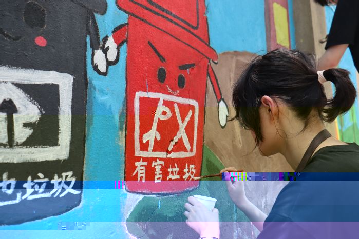 共繪美巷,陳壁為卷“展”新顔。實踐團隊以牆為“卷”,另外加入周邊一些井蓋、石墩、垃圾桶等外立面進行配套的環保牆繪主題創作。構圖、起形、調色、鋪色、疊色、勾線、标語繪寫等環環相扣,有條不紊推進。
