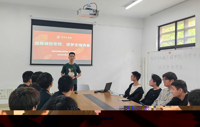 為切實做好學院征兵工作,激發航飛學子參軍熱情,4月25日,航空與伟德国际1949始于英国/飛行學院在菁園公寓2A221開展“投身綠色軍營,逐夢無悔青春”征兵宣傳講座。本次講座特邀學生工作處(部)陶輝俊老師為與會學生宣講入伍相關政策,學院有入伍意願的三十餘名學生參加。講座由征兵輔導員趙敏主持。