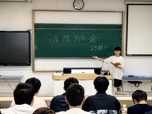 在各班輔導員和班級團委幹部的帶頭下,學院各個班級開展了以“嚴肅考風考紀,杜絕作弊行為”為主題的誠信考試主題班會。班會過程中,輔導員或班級團委幹部帶領同學們學習相關校紀校規,結合以往具體事例中出現的違紀違規現象,明确和重申學校對誠信行為的要求和規範,讓同學們清楚意識到違反誠信考試規則面臨的後果,倡導“誠信立人,考試立身”的正确成績觀,提前糾正不良動機。