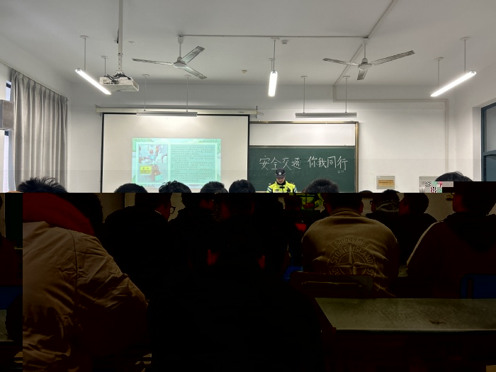 在提高老年人群交通安全意識的同時,青年群體的出行安全也不可忽視。本次活動也有幸請到了新北交警大隊新橋中隊的錢警官為同學們進行交通安全的宣講,錢警官通過三個闆塊,騎行安全、駕駛安全以及駕照考試向同學們講解安全出行的重要性,錢警官的風趣幽默吸引了在場所有同學的目光,每個同學都專心緻志地聽講着,不時會有交流提問。