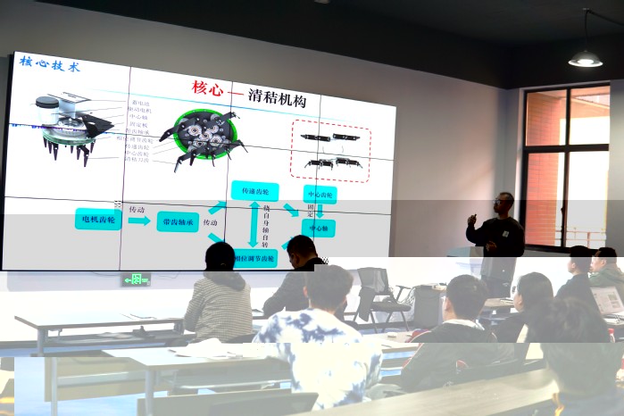 作品涵蓋智能制造系統、機器人技術、新能源裝備等多個前沿領域,充分展現了機械學子紮實的專業素養與創新實踐能力。大賽現場,各參賽團隊通過PPT演示,将實物模型、仿真分析與實驗數據相結合,系統闡述了項目的技術路線、創新突破與工程應用價值。評審環節中,評委老師從技術創新性、工程可行性、應用前景等維度進行了專業評審。