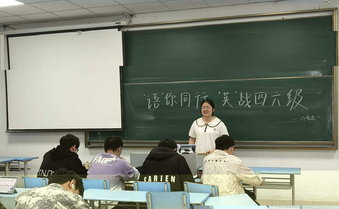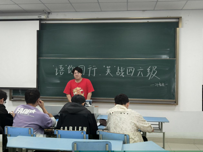 随後,班長貝明烽從考試時間分配、答題策略等應試技巧層面展開深入剖析。他依據四六級考試不同題型的分值分布與特點,為同學們量身定制了合理的答題順序與時間規劃。同時,結合具體真題案例,他細緻入微地分析了常見陷阱與解題思路,鼓勵同學們保持積極樂觀的心态,以輕松之姿迎接考試。