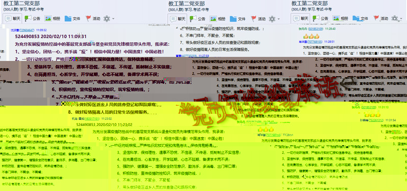 三、号召黨員教師從我做起,帶頭做到“六個确保”,積極踐行“五個帶頭”,并利用好網站論壇、微信、QQ,帶頭宣傳政府政策要求,及時傳播科學預防方法,堅決維護社會大局穩定。